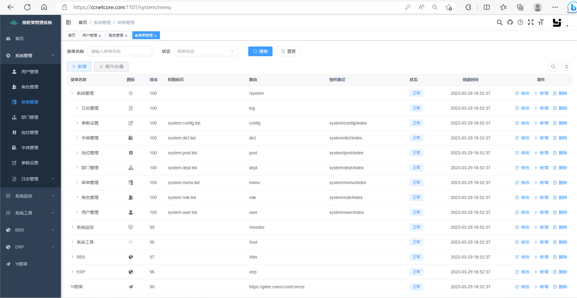 Rbac后台演示地址https://data.ccnetcore.com:1000 用户cc、密码123456